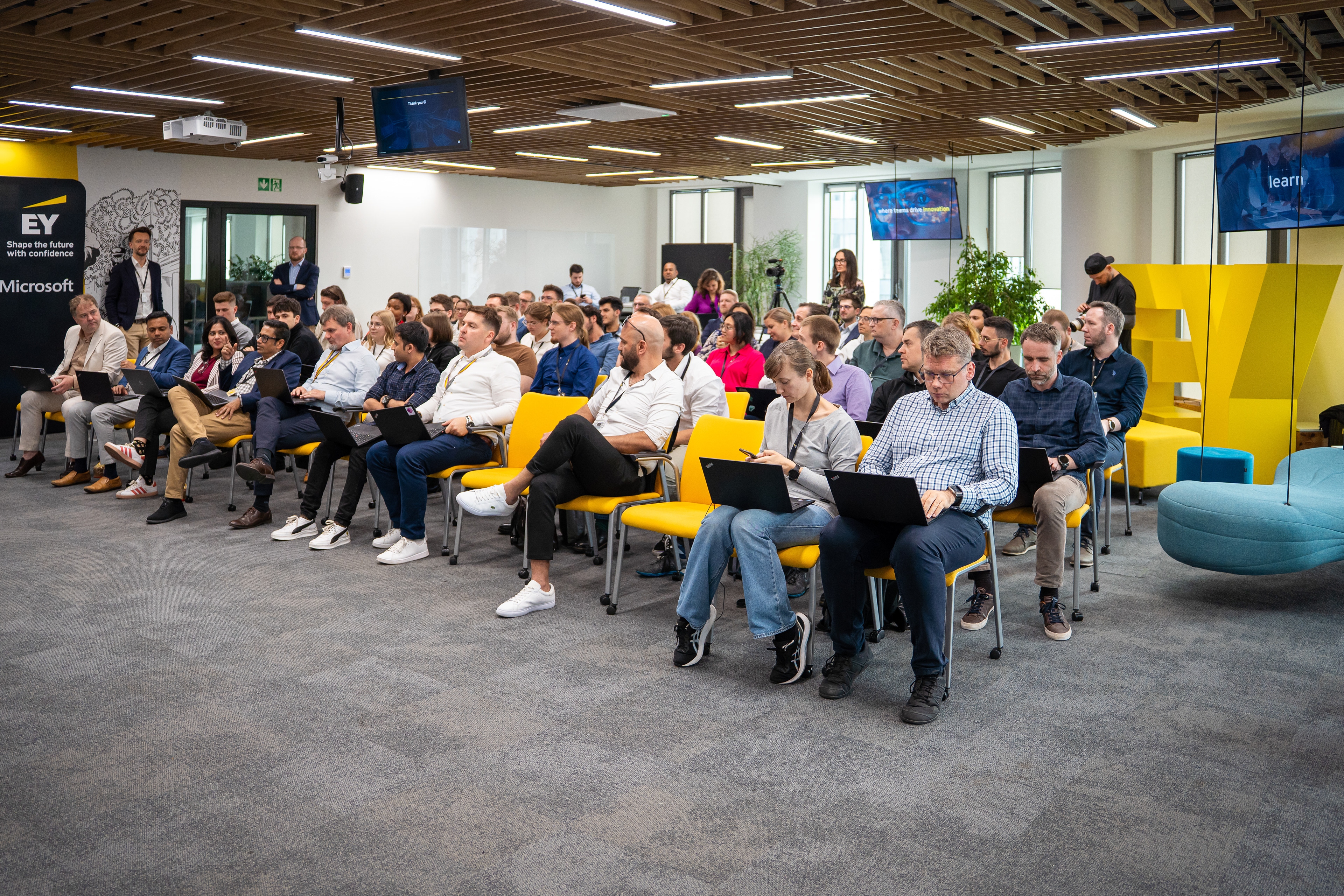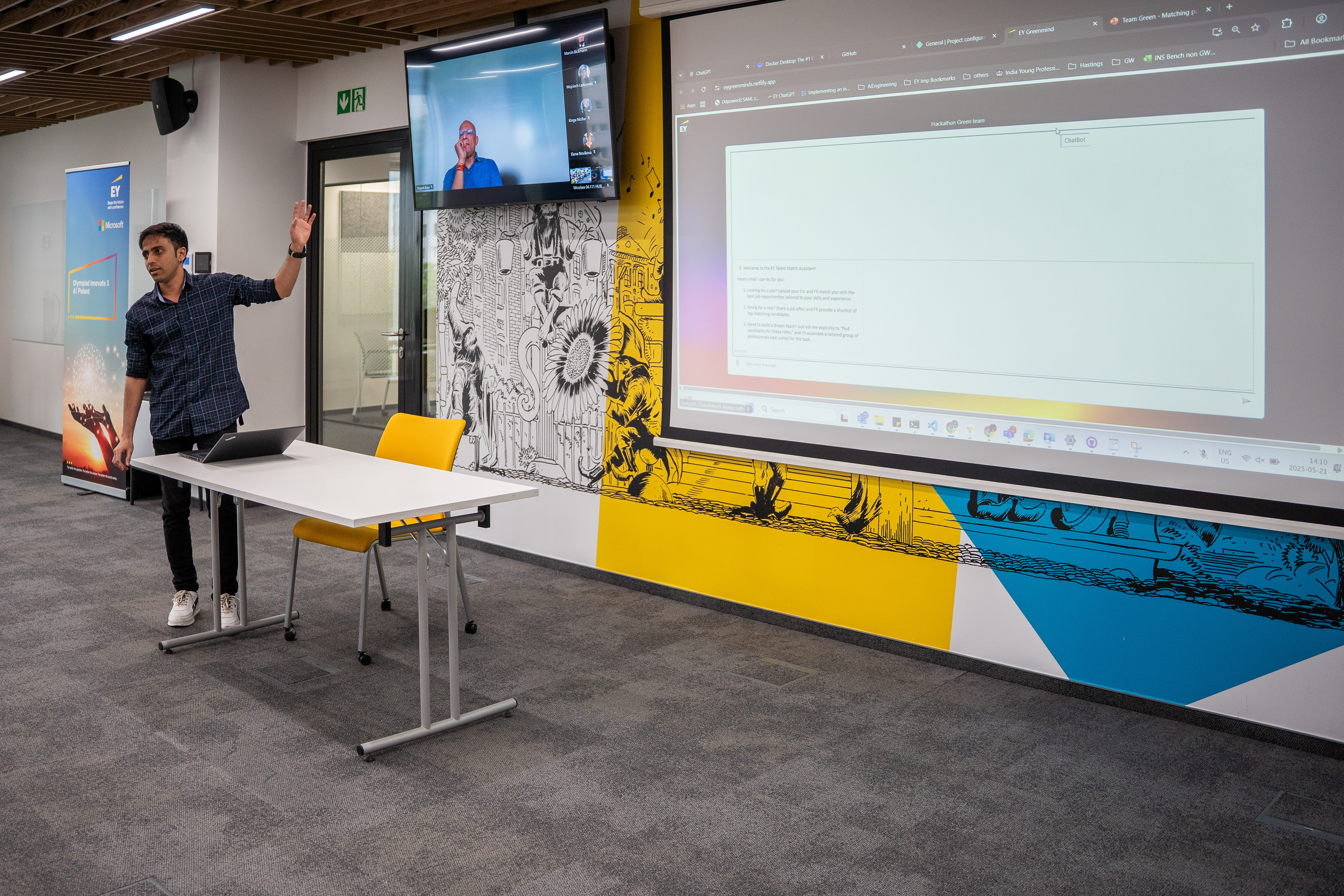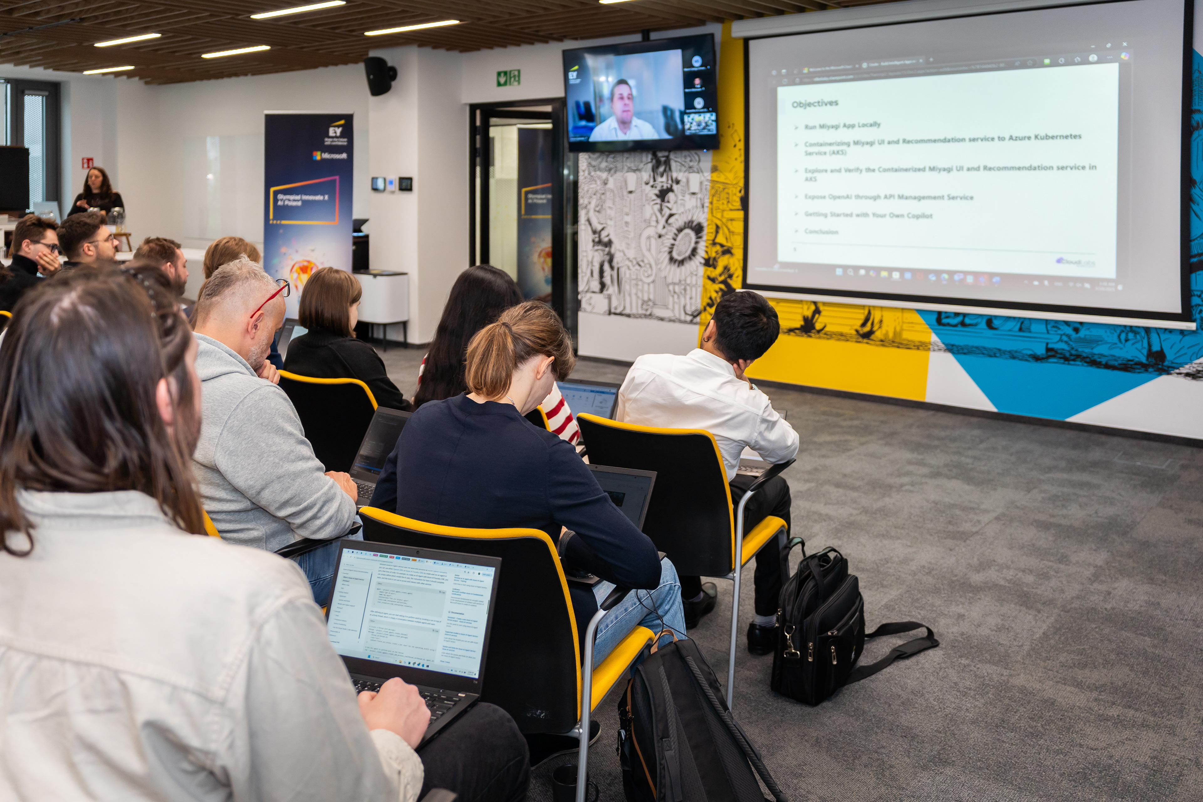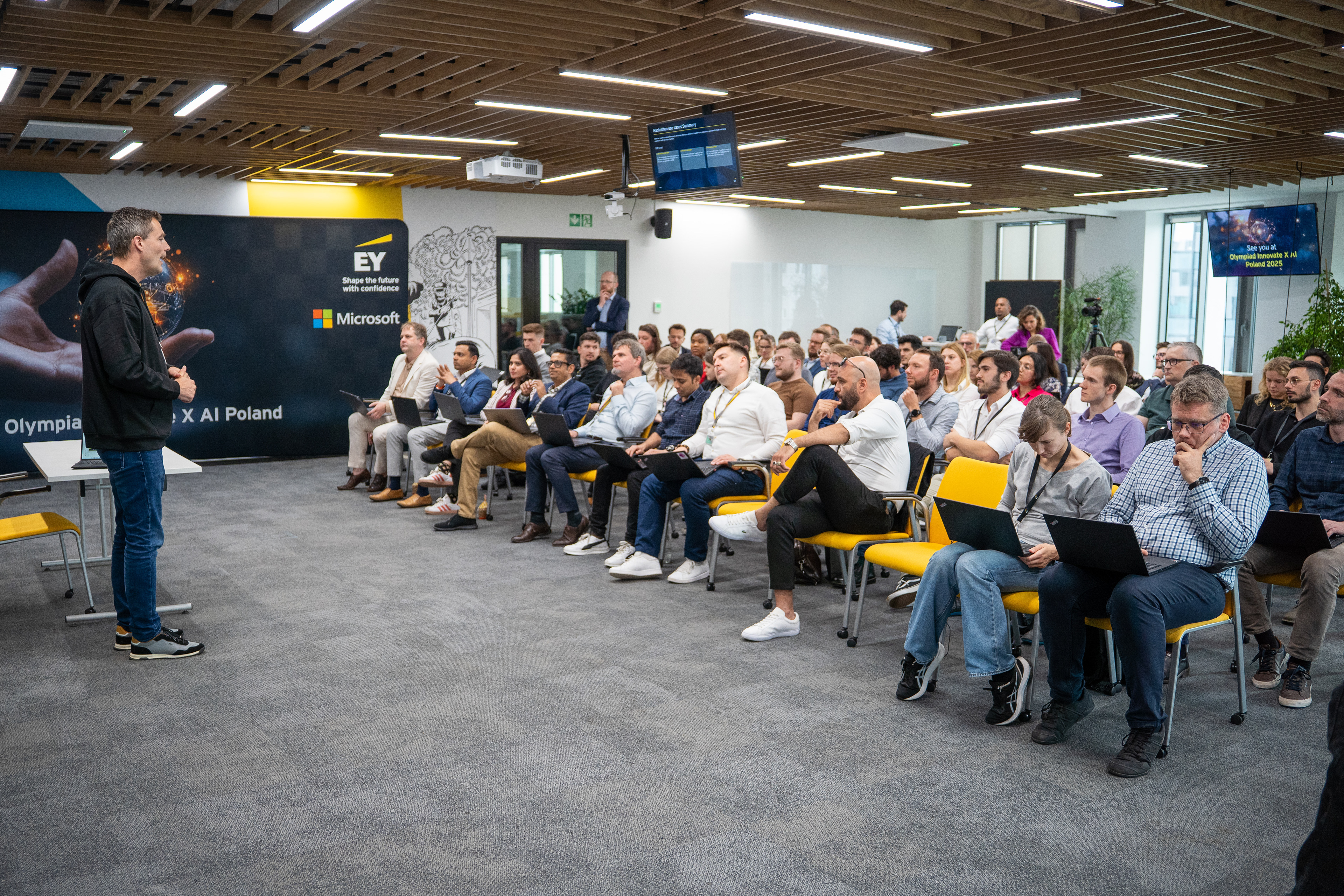 Maraton z programowania organizowany przez firmę EY we współpracy z Microsoftem. Podczas eventu programiści mieli okazję posłuchać prelegentów na temat nowoczesnych technologii, a potem stworzyć w grupie projekt na temat sztucznej inteligencji.